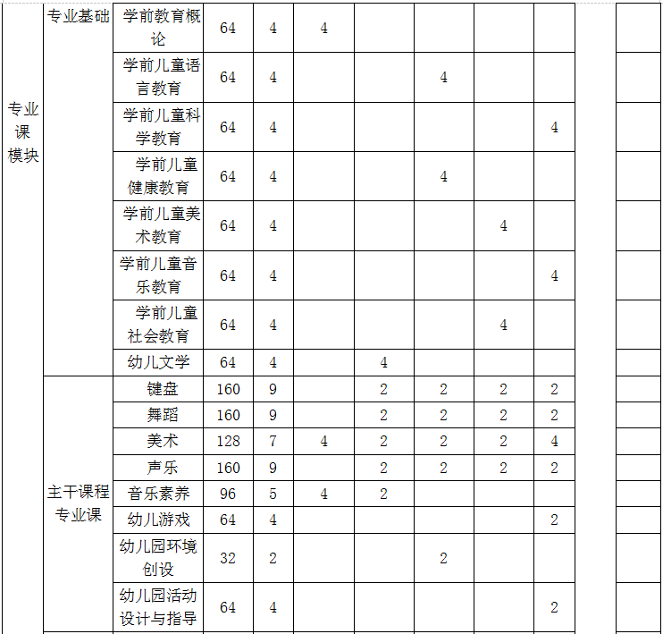 本专业培养适应社会主义现代化建设需要,德智体美劳全面发展的,具有良好的社会公德和职业道德;掌握必备的学前教育理论、文化知识和专业知识;具备标准流畅的语言表达能力以及声乐、钢琴、舞蹈、美术等职业技能;拥有较强的实际工作能力和终身学习能力,从事学前教育领域的教育、保育及管理等岗位的高技能专门人才。