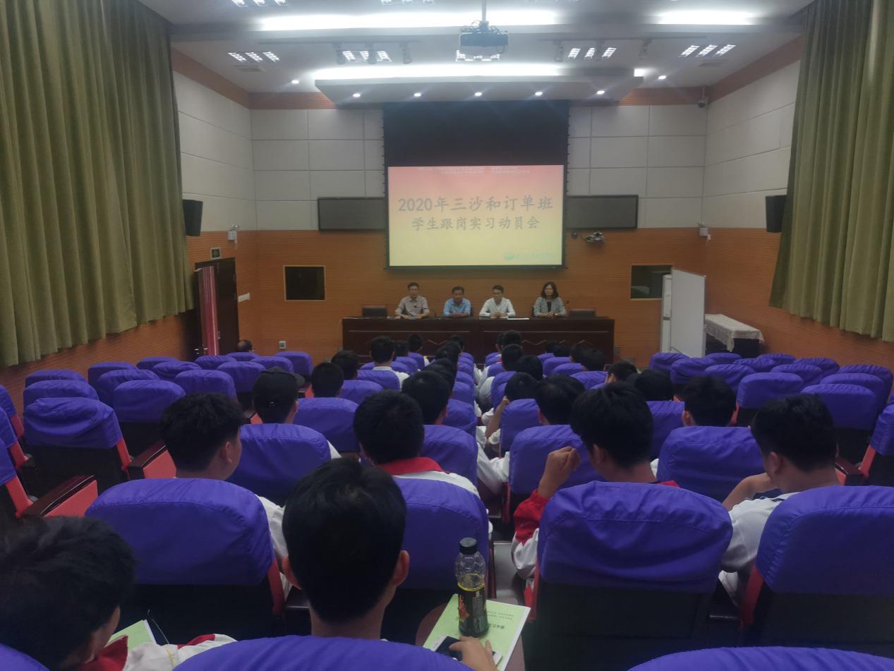 为贯彻落实全国职业教育工作会议精神,规范职业学校学生实习工作,我校深入学习贯彻习近平总书记关于教育的重要论述,加强以习近平新时代中国特色社会主义思想为核心内容的人才建设工作。近日,我校在校直录播室举办2018年金色芭蕾订单班、2018年三沙和订单班跟岗实习动员会。