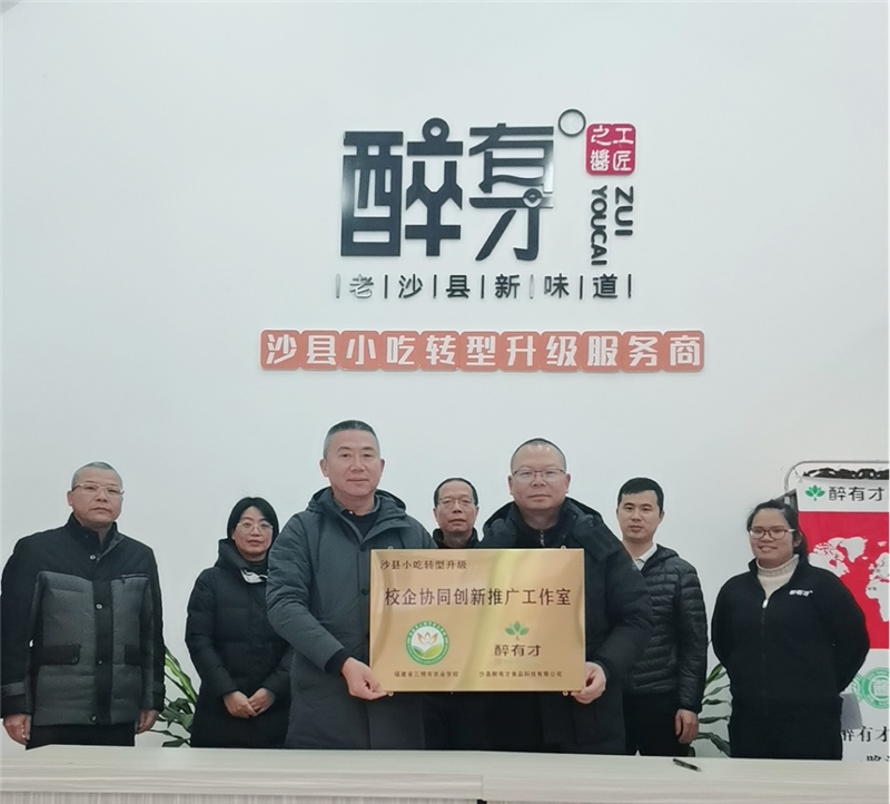 12月17日下午,在位于沙县小吃产业园的沙县醉有才食品科技有限公司内,韦德体育(中国)谢阳军副校长代表学校与醉有才公司总经理颜发辉签约授牌,达成校企协同创新推广合作协议。