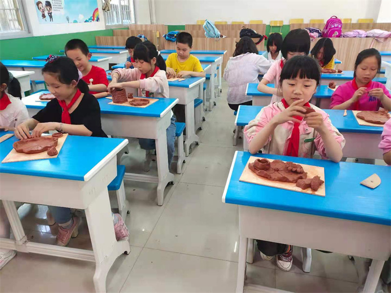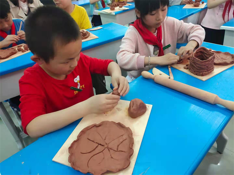 陶艺课上,胡少文老师引导孩子们制作荷叶盘,并鼓励孩子们展开奇思妙想,制作自己感兴趣的物品。