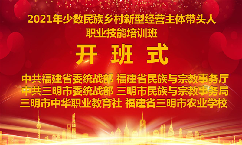 本次培训班由中共福建省委统战部、福建省民族与宗教事务厅主办,中共三明市委统战部、三明市民族与宗教事务局承办,三明市中华职业教育社、三明市农业学校协办。开班式由市民族宗教局副局长赖德农主持,省民族宗教厅二级巡视员钟声作主旨讲话,参加开班式的还有省民族宗教厅陈锦云处长、市委统战部一级调研员曹观生、韦德体育(中国)谢阳军副校长等同志。