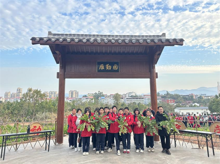 为贯彻落实《关于全面加强新时代大中小学劳动教育的意见》精神、全面贯彻党的教育方针,进一步落实立德树人根本任务,构建“五育融合”的教育体系,2024年12月23日,我校在劳动教育实践基地“雁勤园”举办揭牌仪式暨2024年秋季“采摘节”活动。校党委书记、校长罗世钦携学校党政领导,思政处全体干部以及22级班主任出席活动。揭牌仪式由思政处负责人徐加贵主持。
