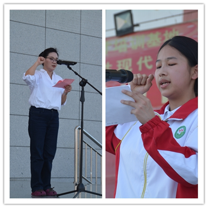教师宣誓:任课教师代表郑素华老师带领全体教师庄严承诺:全力以赴,为学子保驾护航。
